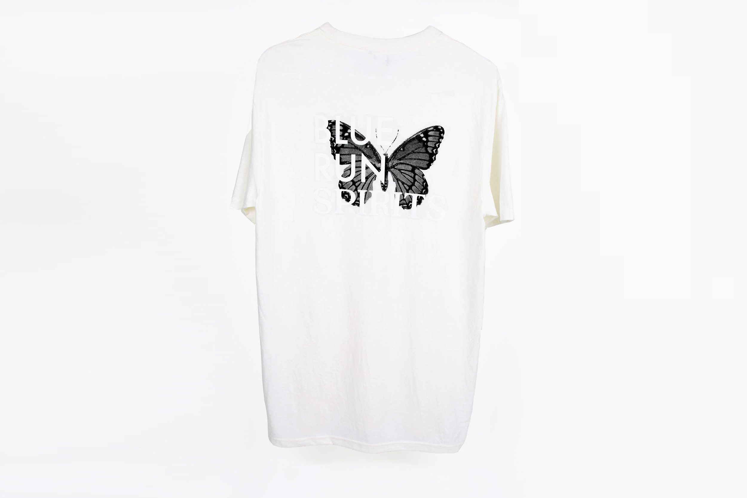 • Embroidered Blue Run font and butterfly